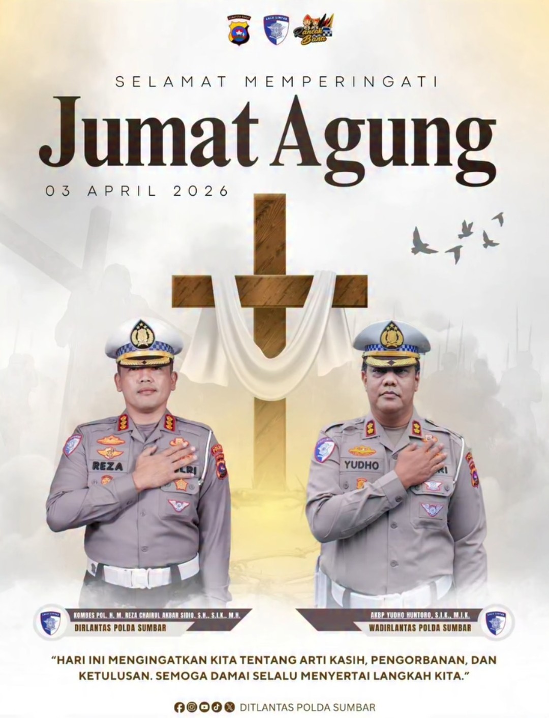 Dengan semangat Jumat Agung, Dirlantas Reza dan Wadirlantas Yudho berharap seluruh elemen masyarakat dapat terus menjaga persatuan dan saling menguatkan dalam kehidupan sehari-hari.