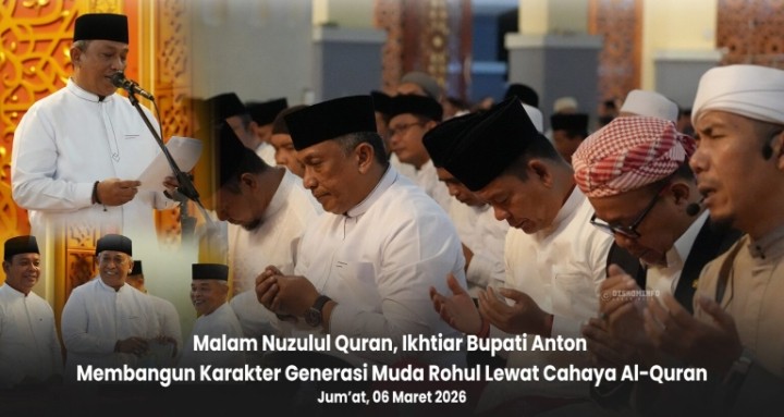 ROKAN HULU | Kehangatan malam Ramadan menyelimuti Kabupaten Rokan Hulu ketika masyarakat berkumpul dalam suasana religius untuk memperingati malam Nuzulul Quran. Momentum penuh hikmah ini menjadi ruang refleksi spiritual sekaligus penguatan nilai keimanan bagi masyarakat yang hadir memadati masjid, merasakan kebersamaan dalam lantunan ayat suci Al Quran yang menggema.