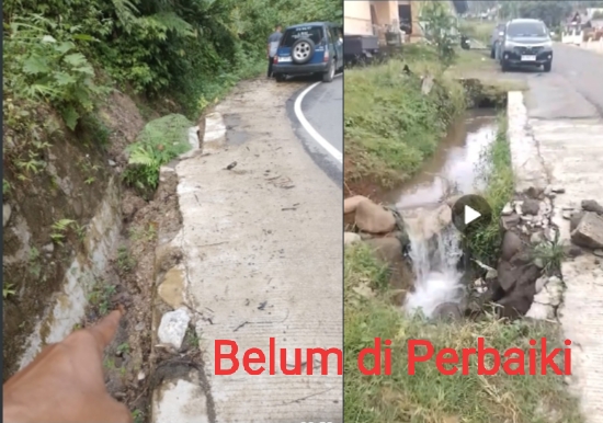 Agam, Minggu 18 Mei 2025 | Pasangan batu dengan mortar di saluran tepi bahu jalan provinsi , yang berlokasi di ruas jalan Palembayan yang ambruk belum habis masa perawatan di kerjakan asal jadi, dan itu pun hanya hanya satu titik , yaitu di STA depan kantor Kapolsek Palembayan, padahal masih banyak titik-titik yang rusak parah di sepanjang ruas jalan itu, hal ini terbukti berdasarkan investigasi taem LSM Garuda NI yang di dampingi oleh sejumlah media cetak dan online Jumat 16-mai-2025